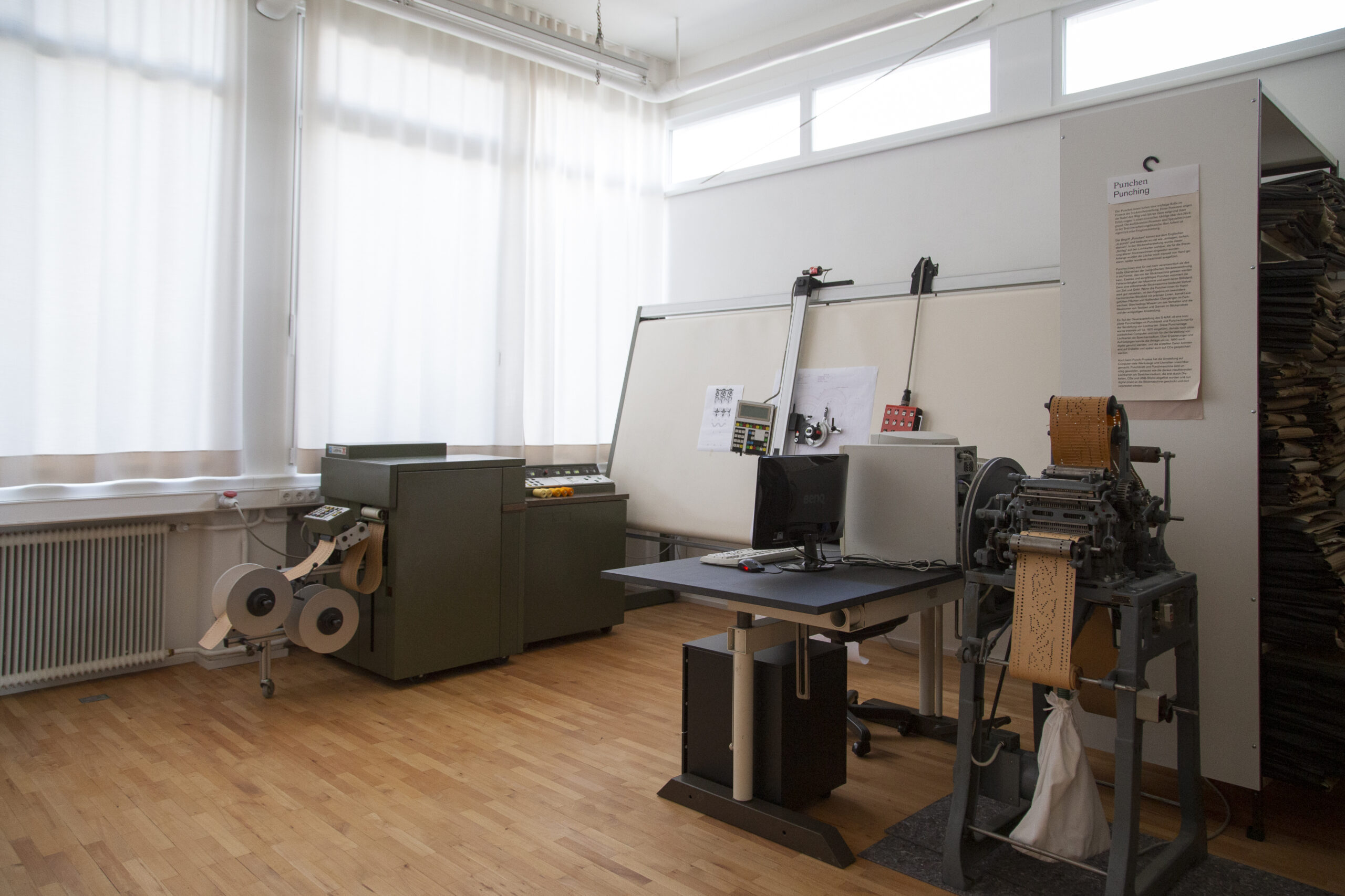 Unsere Besucher:innen sind besonders davon fasziniert, unsere Stickmaschinen in Betrieb zu sehen. Sie werden regelmäßig vorgeführt, etwa bei privaten Führungen oder jeden letzten Freitag im Monat im Rahmen einer öffentlichen Vorführung.