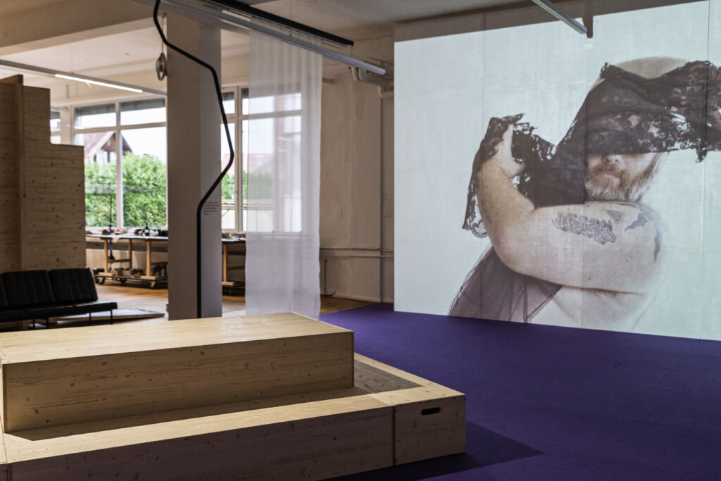 Wenn jene Stimmen in den Kopfhörern auf neugierige, liebevolle, aber auch zaghafte oder schüchterne Art über ihre Haut, ihre Körper und Kleidung sprechen, wird erkennbar, wie stark das alltägliche Erleben durch Kleidung beeinflusst wird. Mode repräsentiert nicht nur einen Zeitgeist und seinen jeweiligen Stil, sondern kann auch Stereotypen und Ideale von Körperbildern reproduzieren. Larissa Kramareks Reise in das Materialarchiv fördert nicht nur die Geschichte des Lustenauer Handwerks zutage, sondern legt schichtweise die Wechselwirkung zwischen Schönheitsidealen, Normvorstellungen und regionaler Textilproduktion frei. „Von Kleidern und Körpern“ ist eine Ausstellung über die Macht der Mode, Körper an ihren vermeintlich gehörigen Platz in der Gesellschaft zu verweisen. Aber es ist auch eine Ausstellung über die unerfüllten Sehnsüchte, Fantasien und Träume, die in jede Masche eingewoben sind. So beschreiben die erzählenden Stimmen Kleidung mal als empowernde Rüstung, mal als einengendes Korsett. Mal ihre Körper als Rückzugsort und Ausdruck ihrer Persönlichkeit, mal als unfreiwilligen Schauplatz gesellschaftlicher Kämpfe. Denn ein Ausbruch aus den Regeln erfordert Mut und birgt die Gefahr, als Exzentriker:in oder Sonderling verstanden zu werden. Cross Dressing, Queerness und fat pride sind noch immer ambivalent verhandelte Phänomene in der Mode.